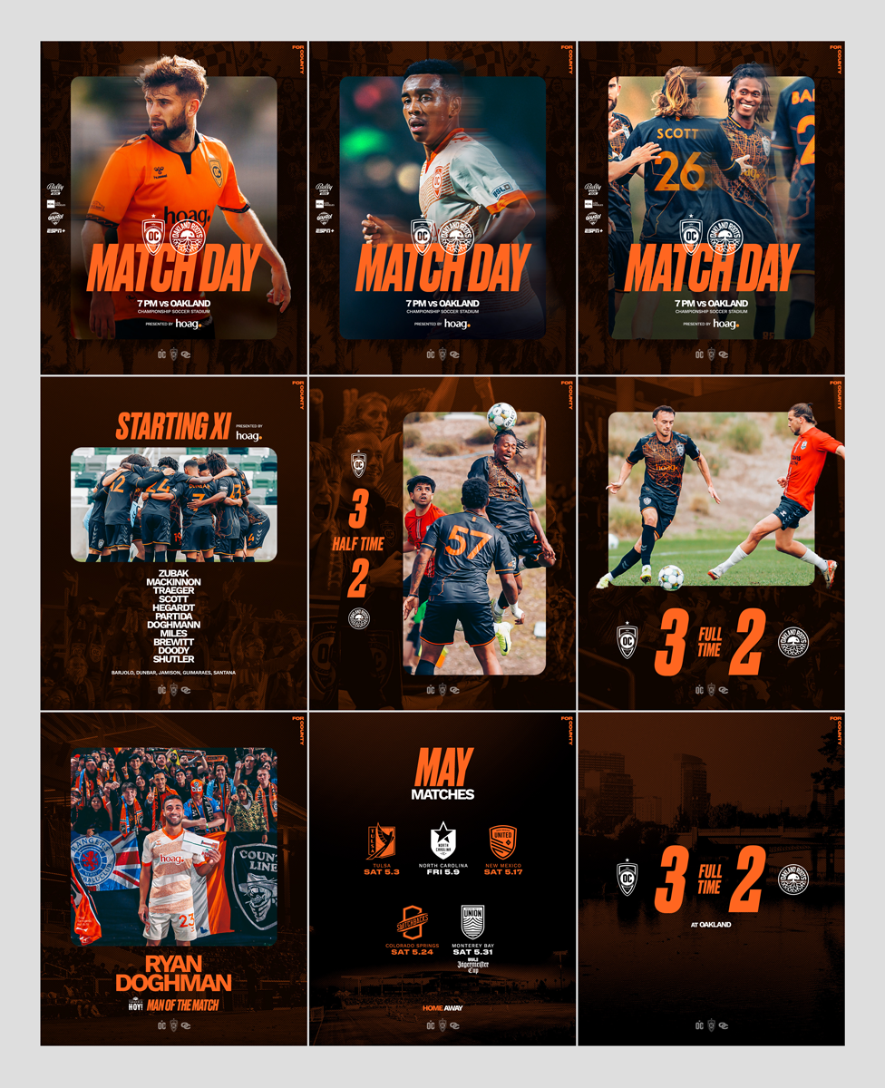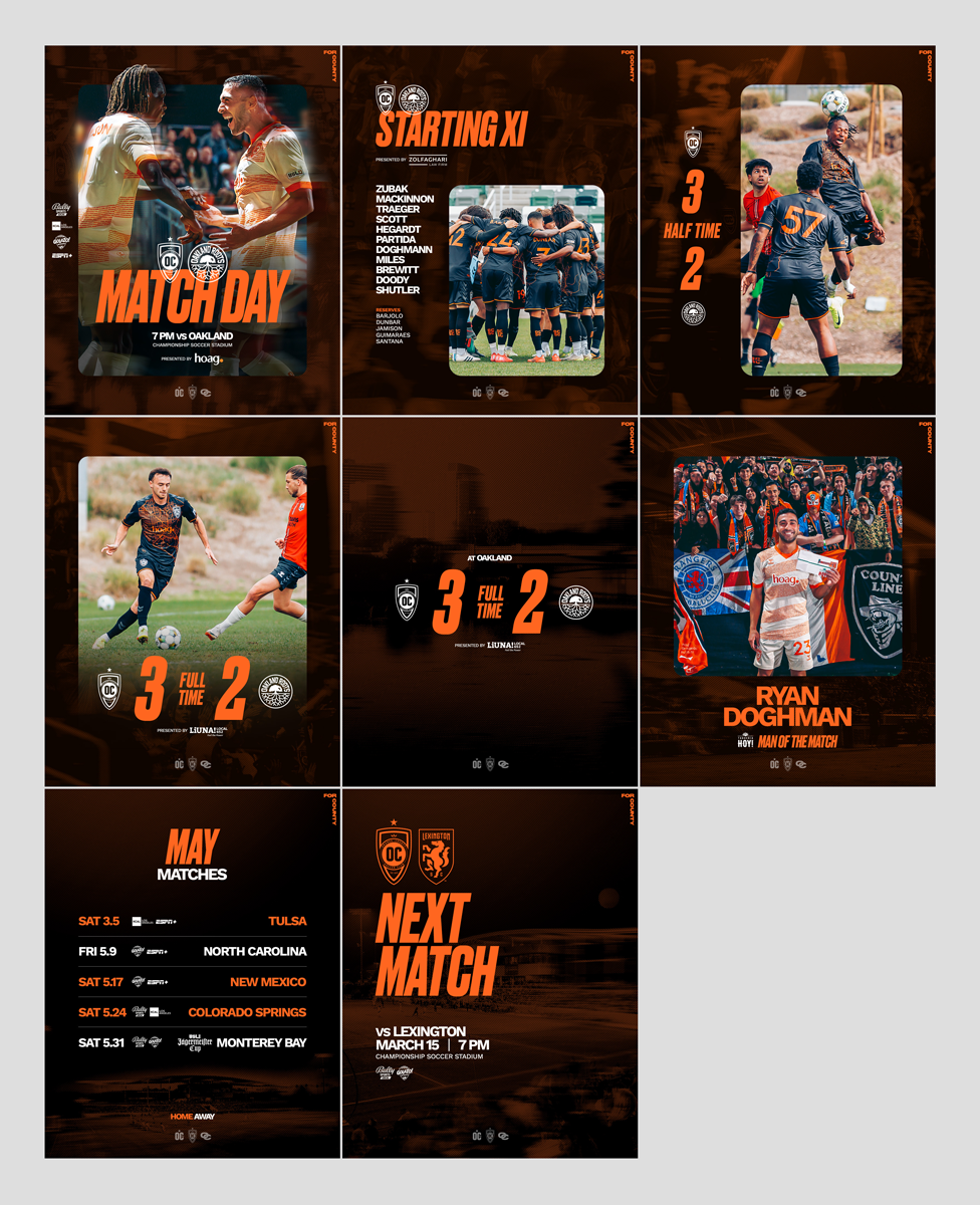 Consistency: Before I joined OCSC, the brand leaned heavily into orange and often overdid it. Over the past two years we have rebuilt the palette, brought back balance, and created a visual language that tells our story while showing where we want the club to go.