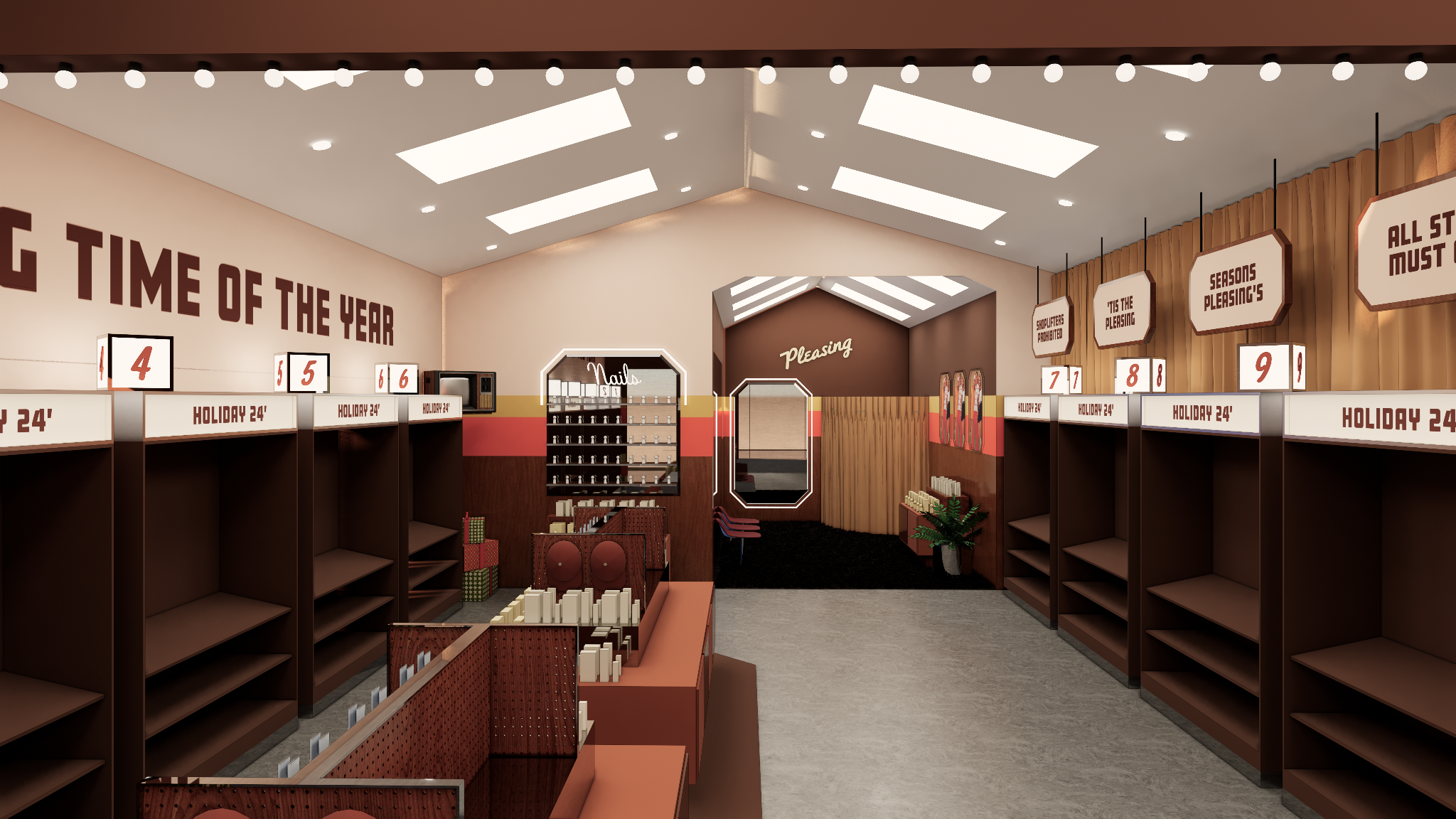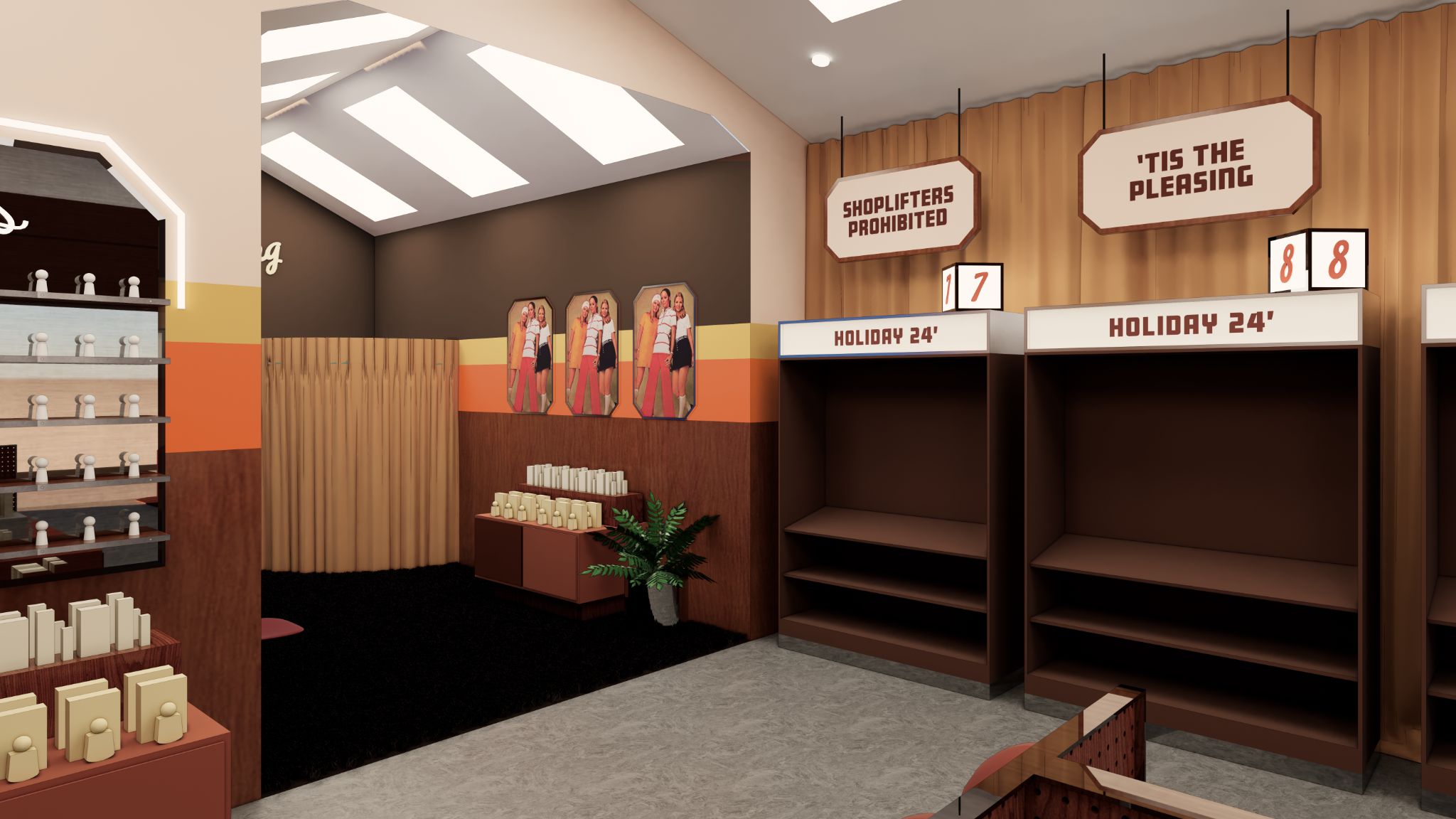 Turn a Pleasing Holiday Pop Up store into a 70s inspired supermarket.